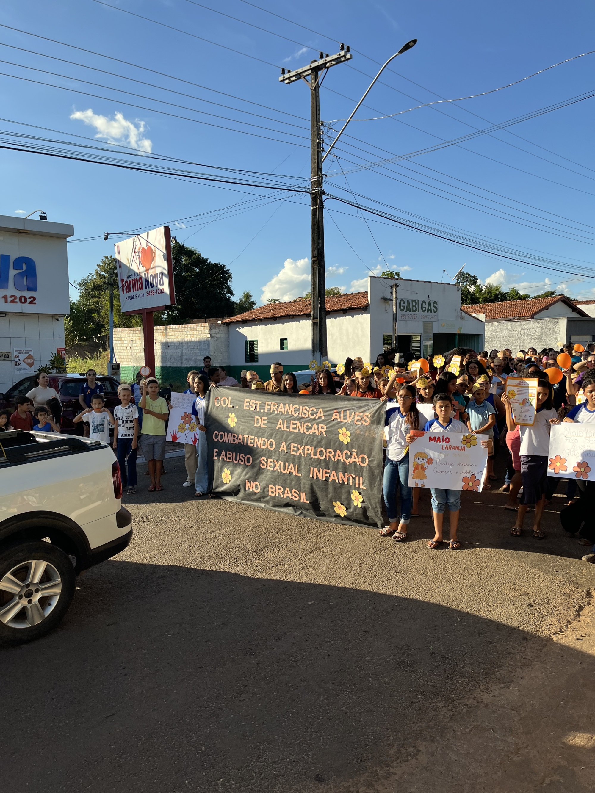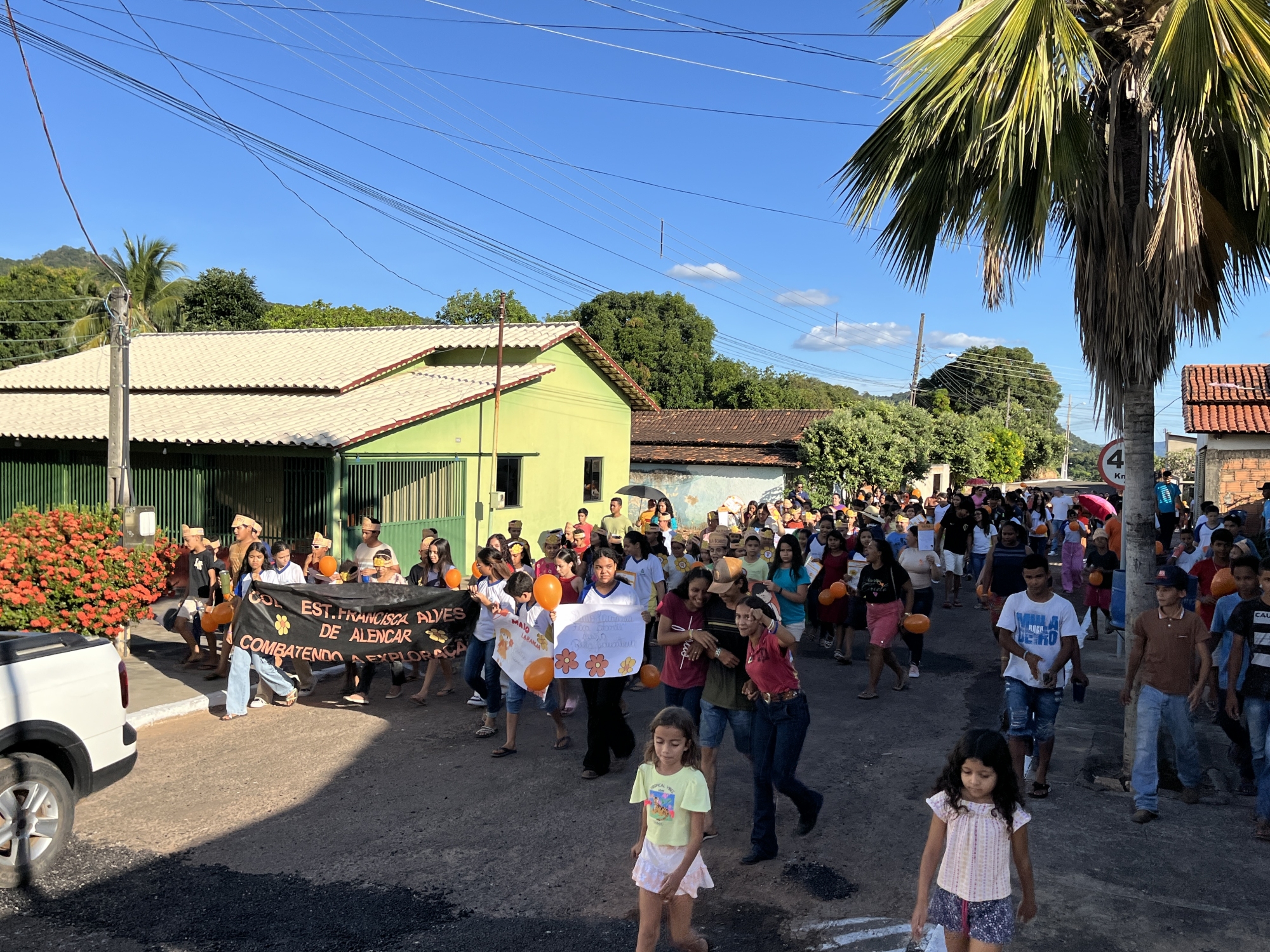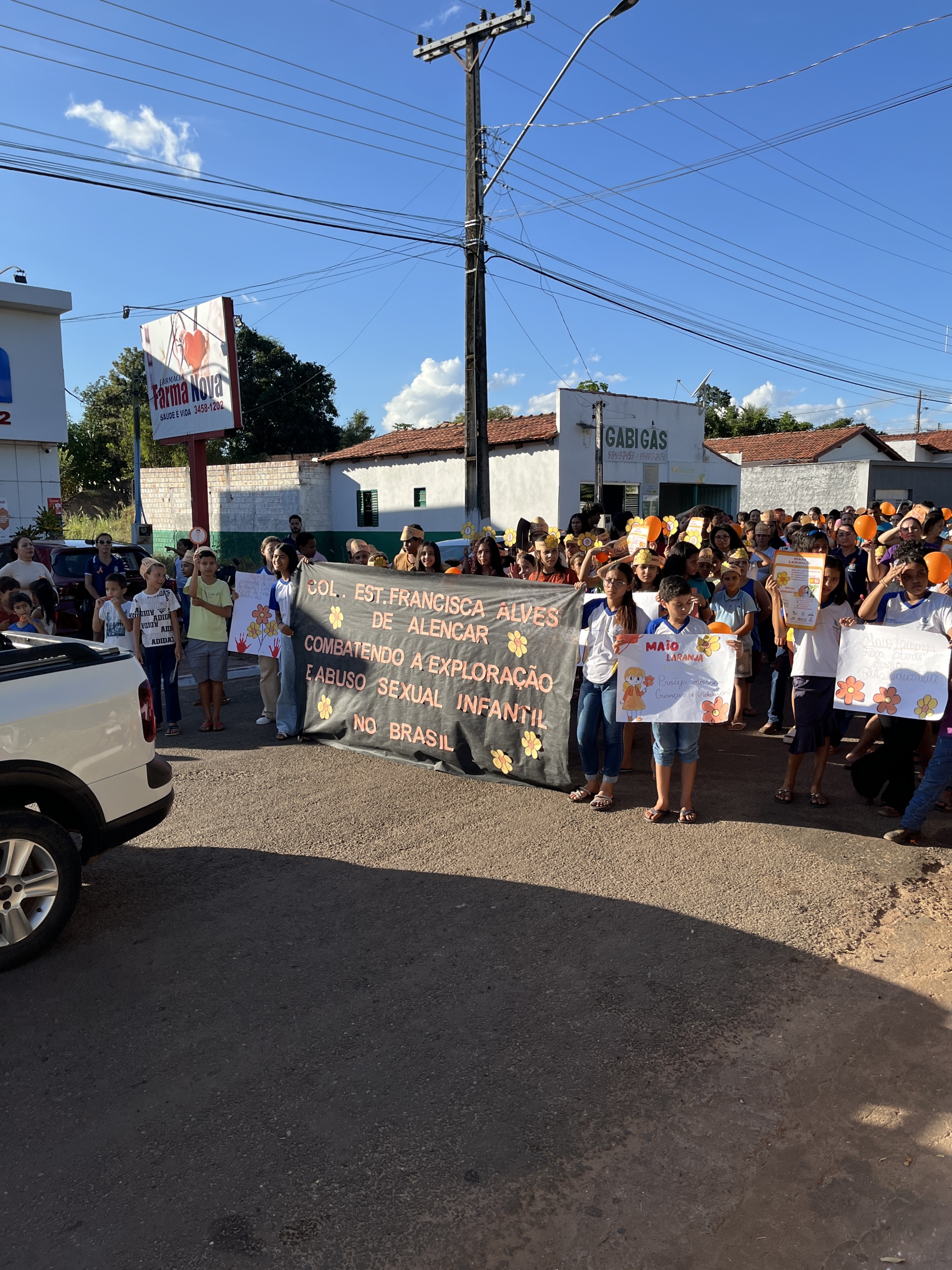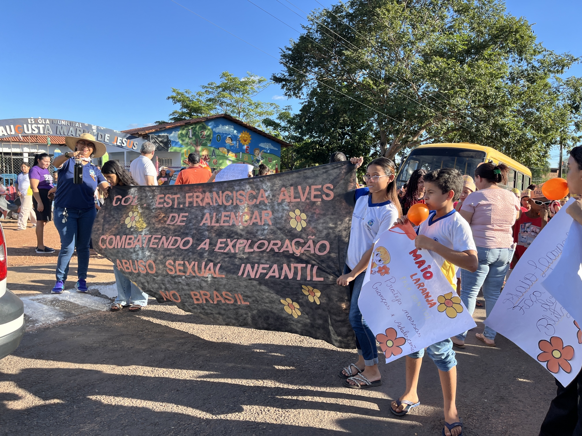 Conselho Tutelar, Conselho Municipal dos Direitos da Criança e do Adolescente (CMDCA), Colégio Estadual Francisca Alves de Alencar, Escola Municipal Dona Augusta Maria de Jesus e Secretarias Municipais de Saúde, Assistência Social, Educação e da Mulher, entre outros, reuniram-se em parceria na tarde desta quarta-feira (21) para a realização da “Caminhada pelo Combate ao Abuso e à Exploração Sexual de Crianças e Adolescentes”.