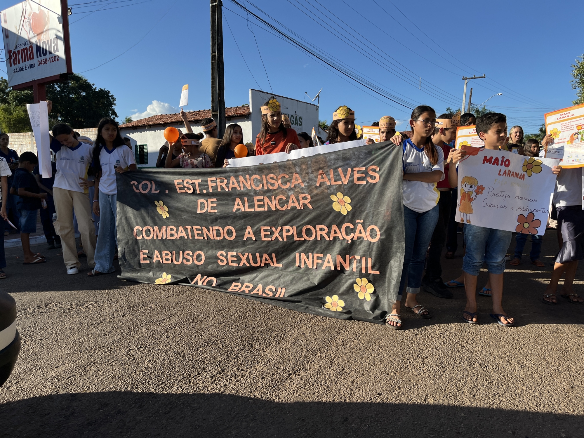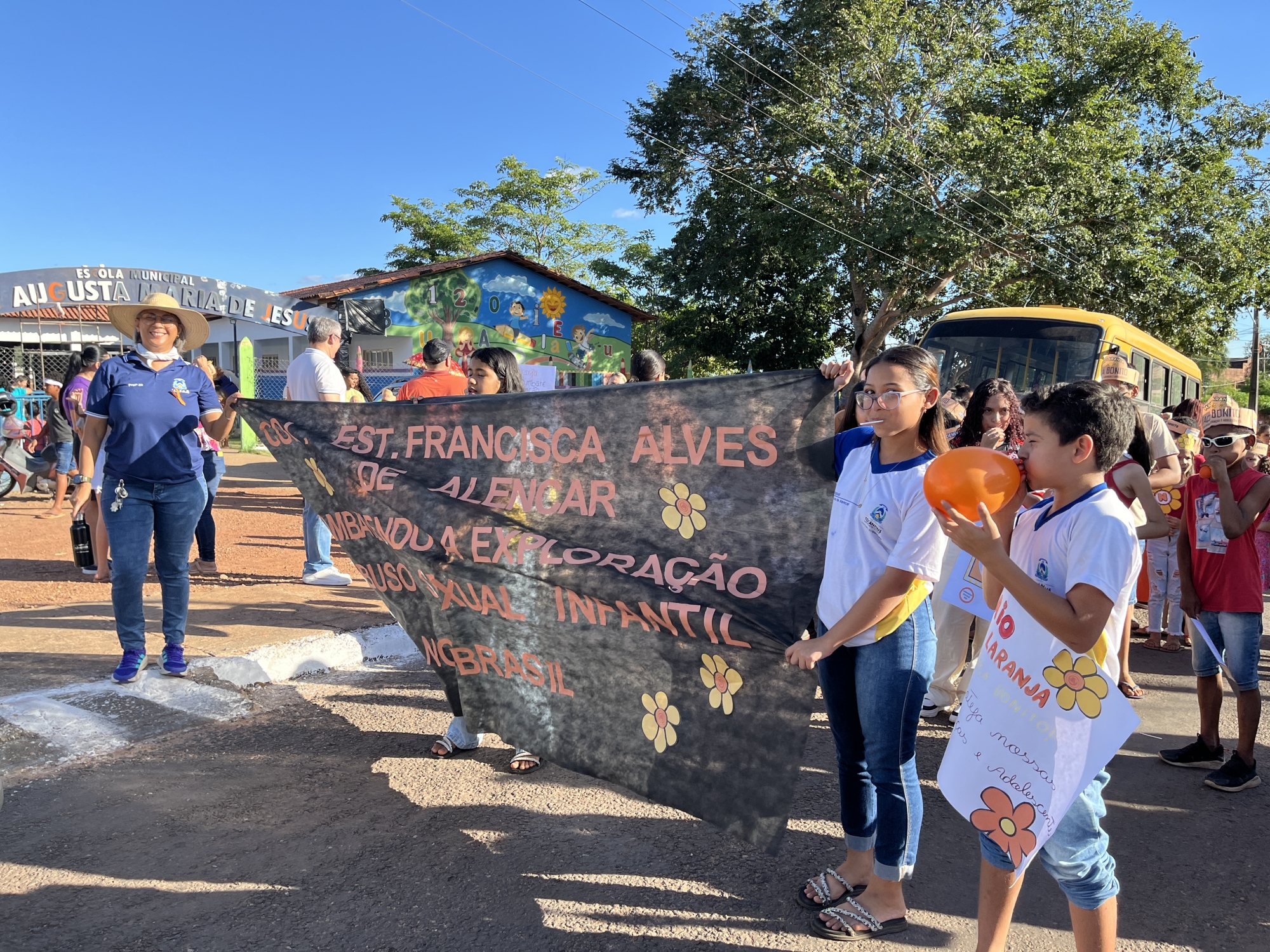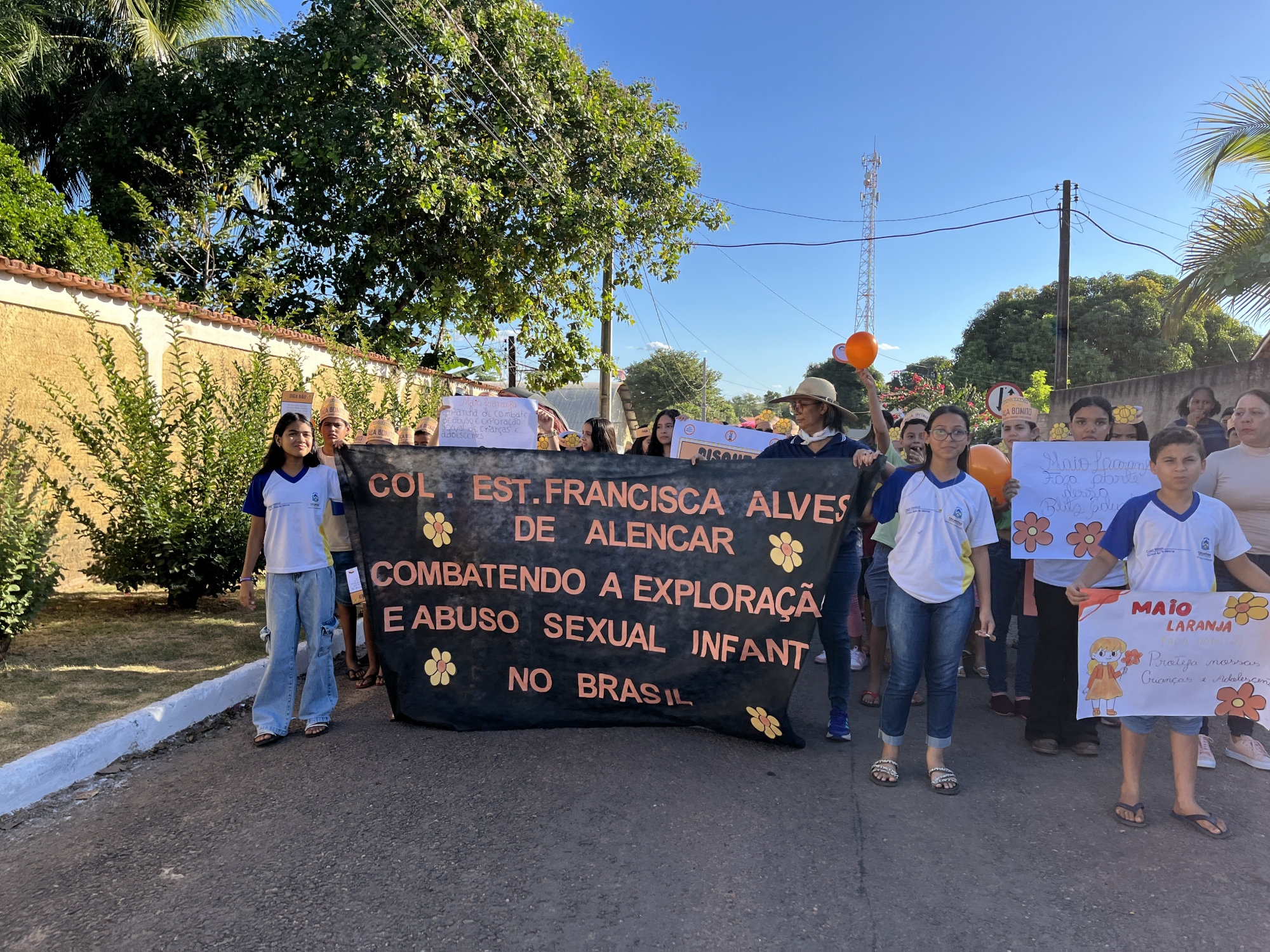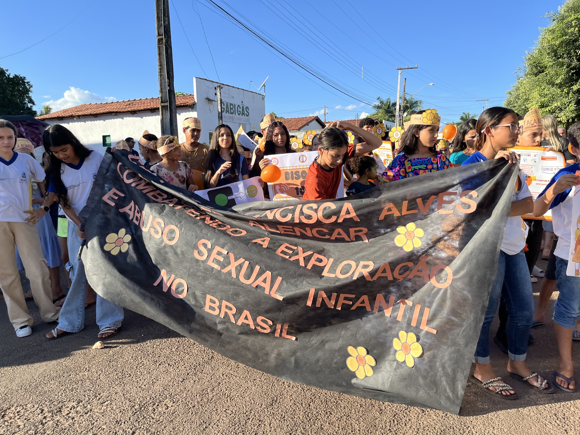 Conselho Tutelar, Conselho Municipal dos Direitos da Criança e do Adolescente (CMDCA), Colégio Estadual Francisca Alves de Alencar, Escola Municipal Dona Augusta Maria de Jesus e Secretarias Municipais de Saúde, Assistência Social, Educação e da Mulher, entre outros, reuniram-se em parceria na tarde desta quarta-feira (21) para a realização da “Caminhada pelo Combate ao Abuso e à Exploração Sexual de Crianças e Adolescentes”.