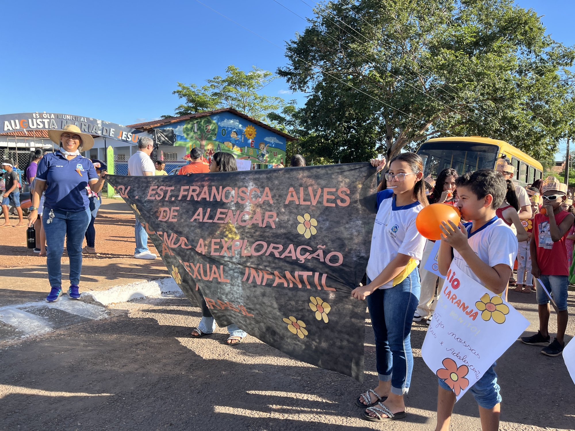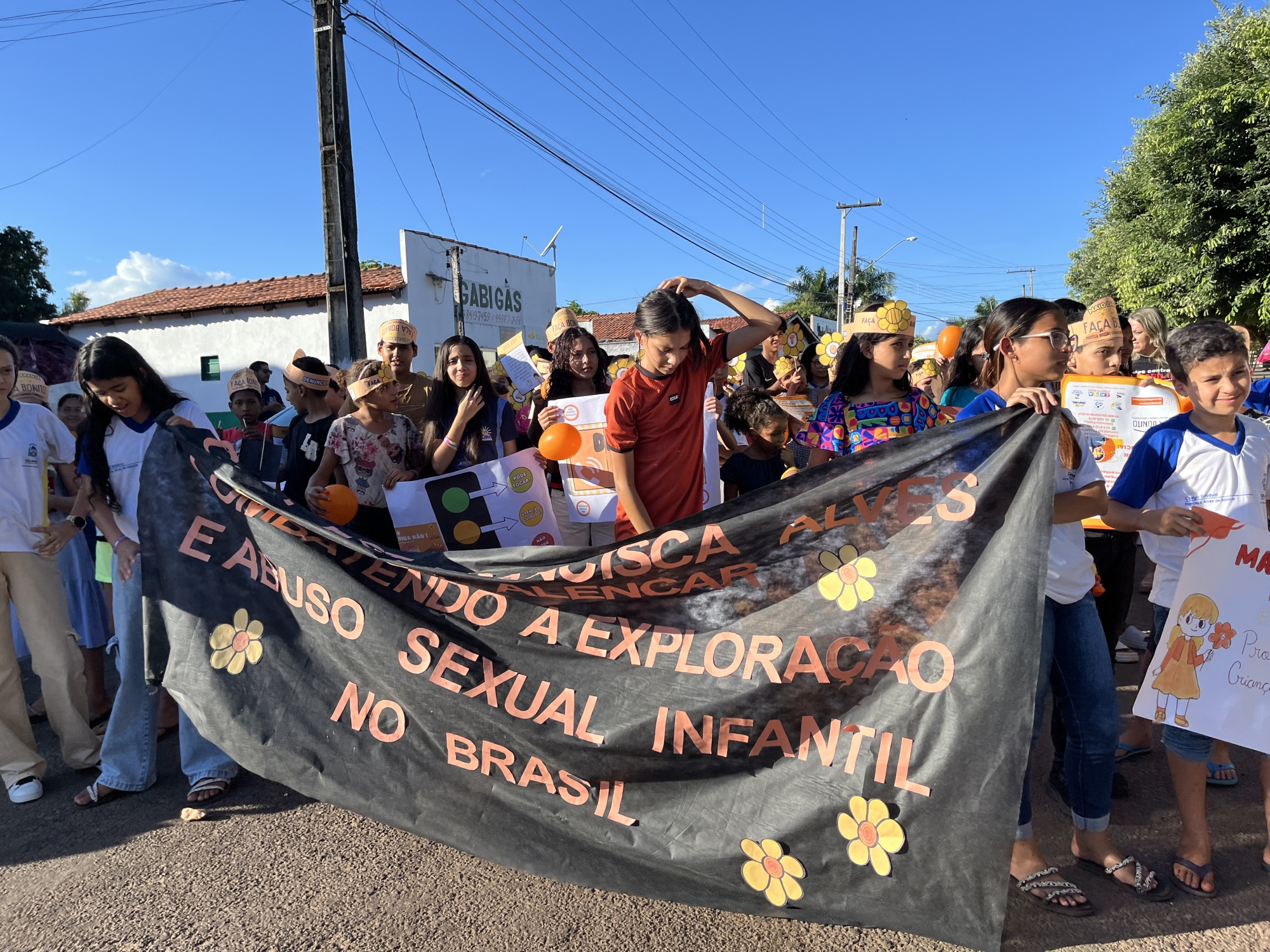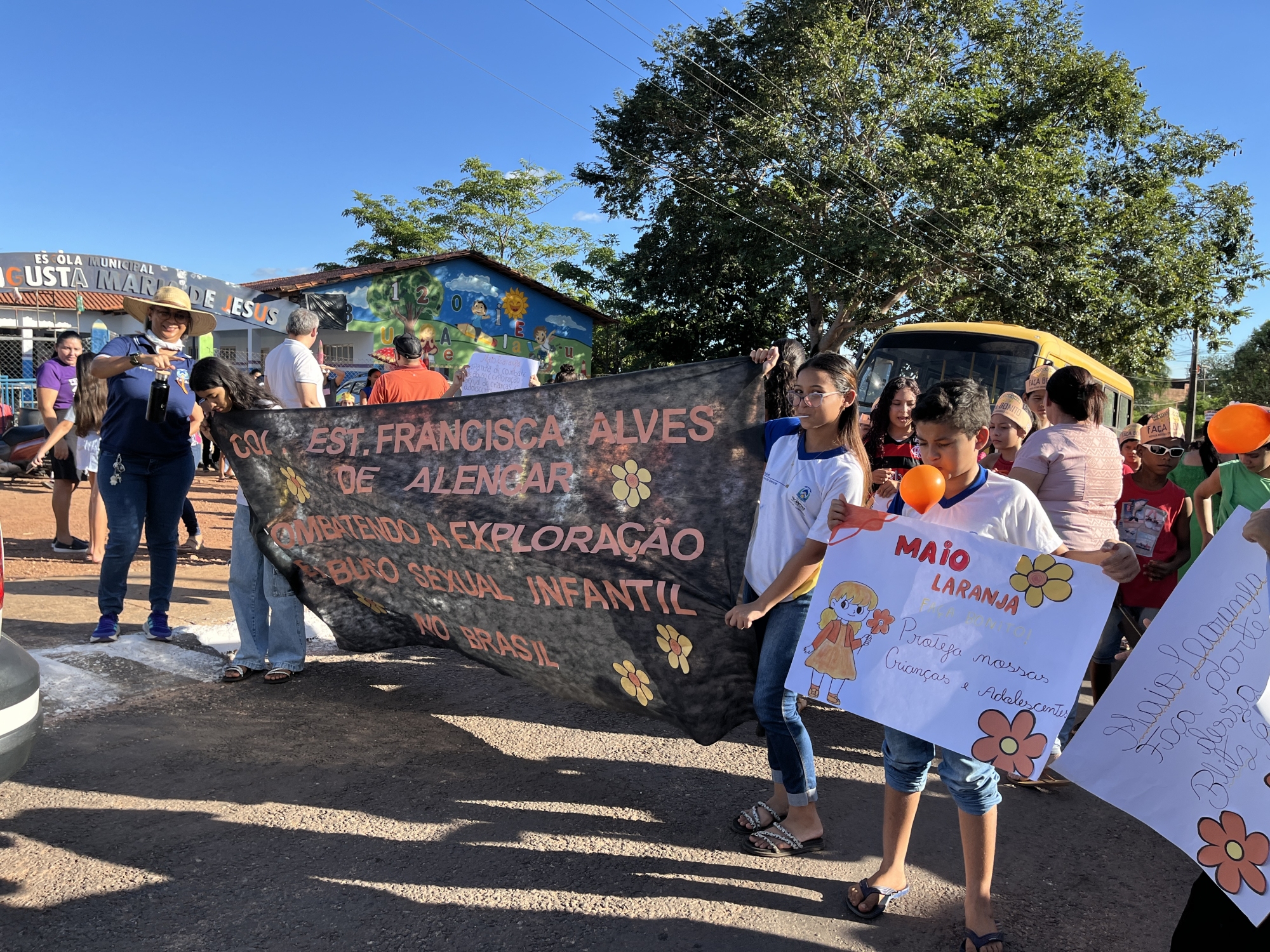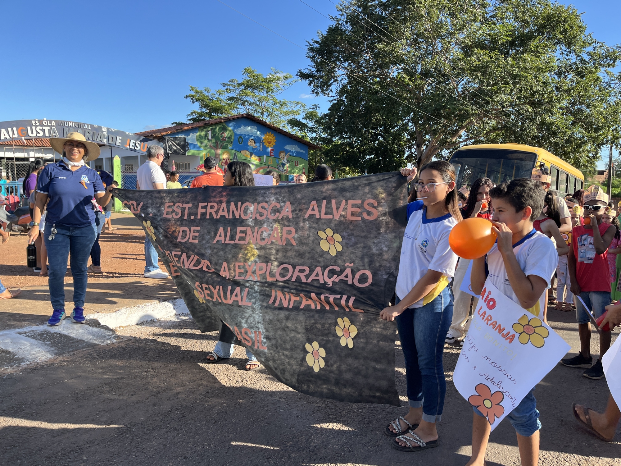 Conselho Tutelar, Conselho Municipal dos Direitos da Criança e do Adolescente (CMDCA), Colégio Estadual Francisca Alves de Alencar, Escola Municipal Dona Augusta Maria de Jesus e Secretarias Municipais de Saúde, Assistência Social, Educação e da Mulher, entre outros, reuniram-se em parceria na tarde desta quarta-feira (21) para a realização da “Caminhada pelo Combate ao Abuso e à Exploração Sexual de Crianças e Adolescentes”.