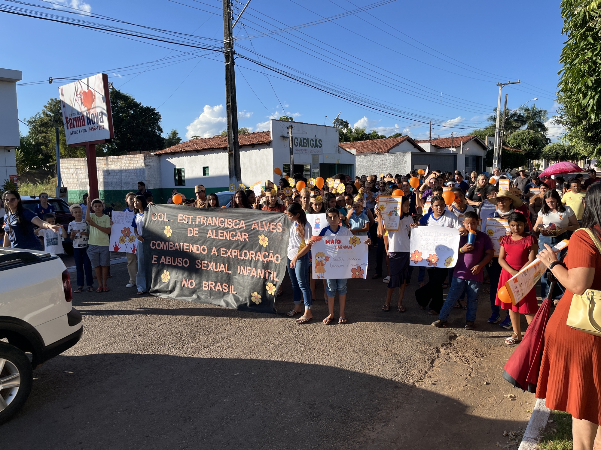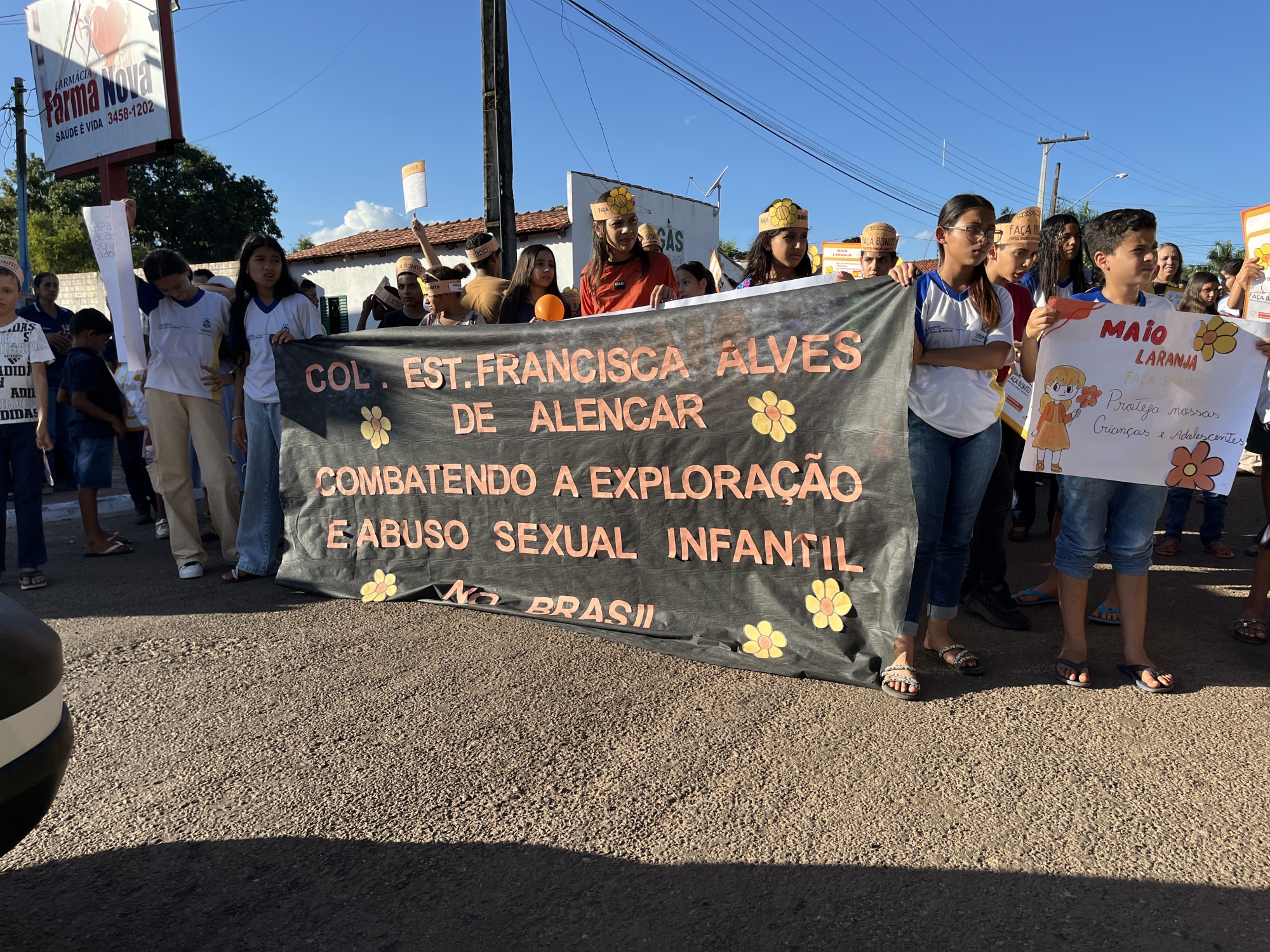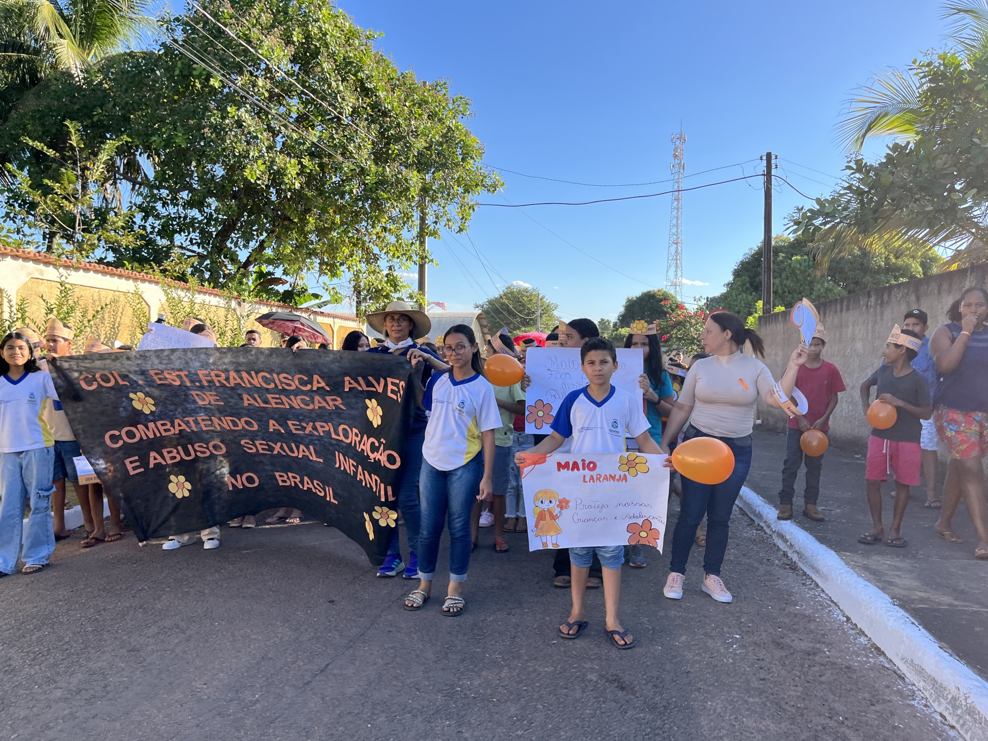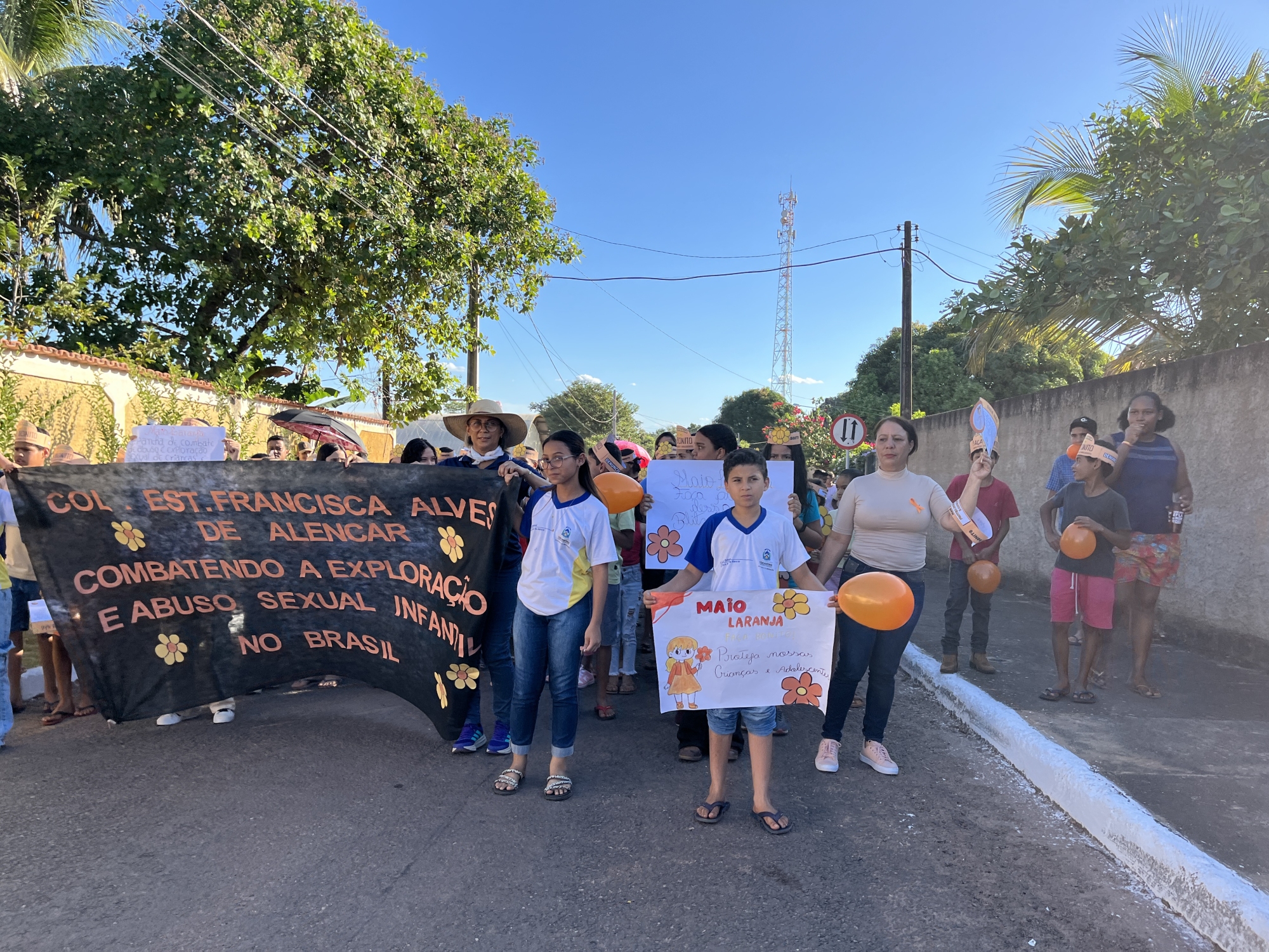 Conselho Tutelar, Conselho Municipal dos Direitos da Criança e do Adolescente (CMDCA), Colégio Estadual Francisca Alves de Alencar, Escola Municipal Dona Augusta Maria de Jesus e Secretarias Municipais de Saúde, Assistência Social, Educação e da Mulher, entre outros, reuniram-se em parceria na tarde desta quarta-feira (21) para a realização da “Caminhada pelo Combate ao Abuso e à Exploração Sexual de Crianças e Adolescentes”.